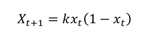 这个方程描述的是动态系统中,一段时间后某个量的变化结果(Xt+1),与其现在的状态(Xt)有关。其中,k是特定的常数,对于k已确定的情况下,初始值x不同,事件的发展也大为不同。相信蝴蝶效应大家都很了解,这就是混沌理论的一种表现。也许,某天你不小心放了一个屁,会引起美国华盛顿的一场暴风。